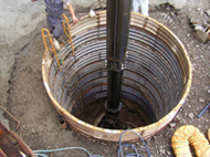 小口径深礎工とは一般的に直径2.0mから5.0mまでの深礎杭で弊社では人力を併用したテレスコクラム等による掘削工法と人力を併用した小型バックホウ掘削とクレーン排土を組み合わせた掘削工法を採用しています。